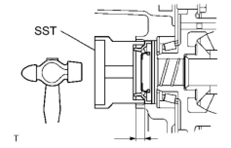 (b) Using SST and a hammer, tap in the oil seal.