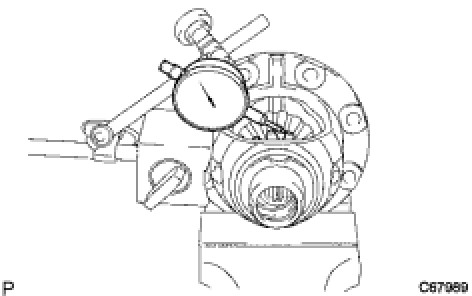 (a) Secure the front differential pinion to the front differential case side. Using a dial indicator, measure the front differential side gear backlash.