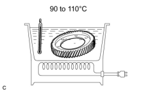 (b) Using a heater, heat the front differential ring gear to 90 to 110°C (194 to 230°F).