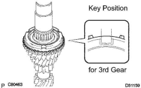 Fit the synchromesh shifting keys into the grooves of the synchronizer ring correctly.