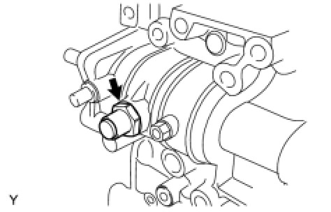(a) Remove the bolt and speedometer driven hole cover sub-assembly from the transaxle case.