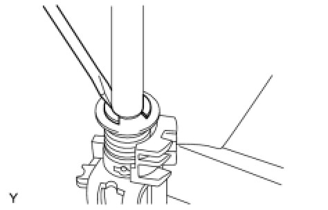 (a) Using 2 screwdrivers and a hammer, remove the No. 1 select spring seat shaft snap ring.