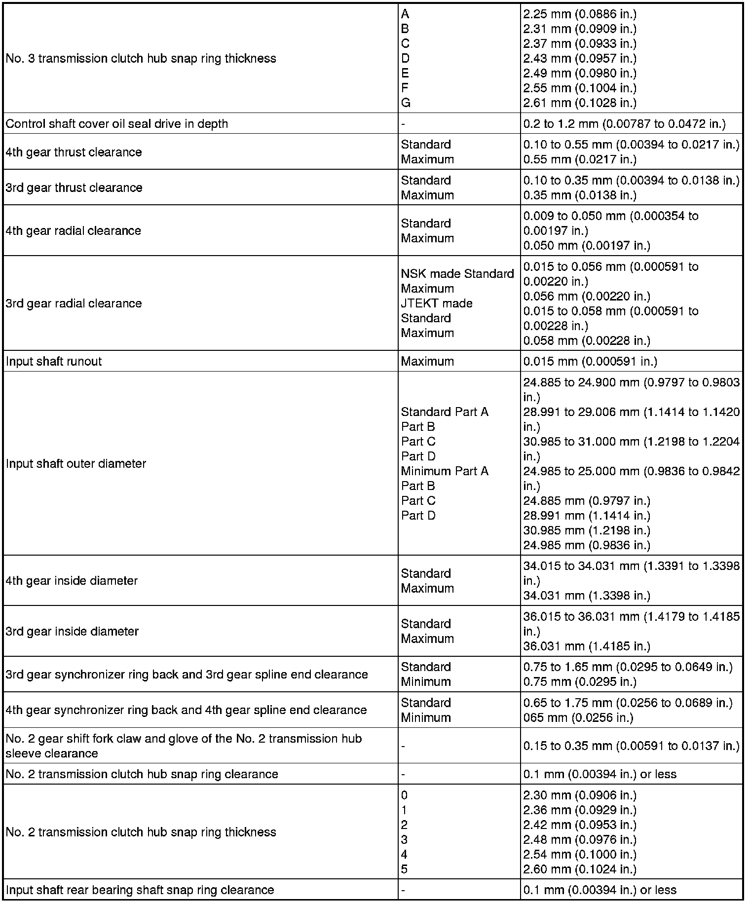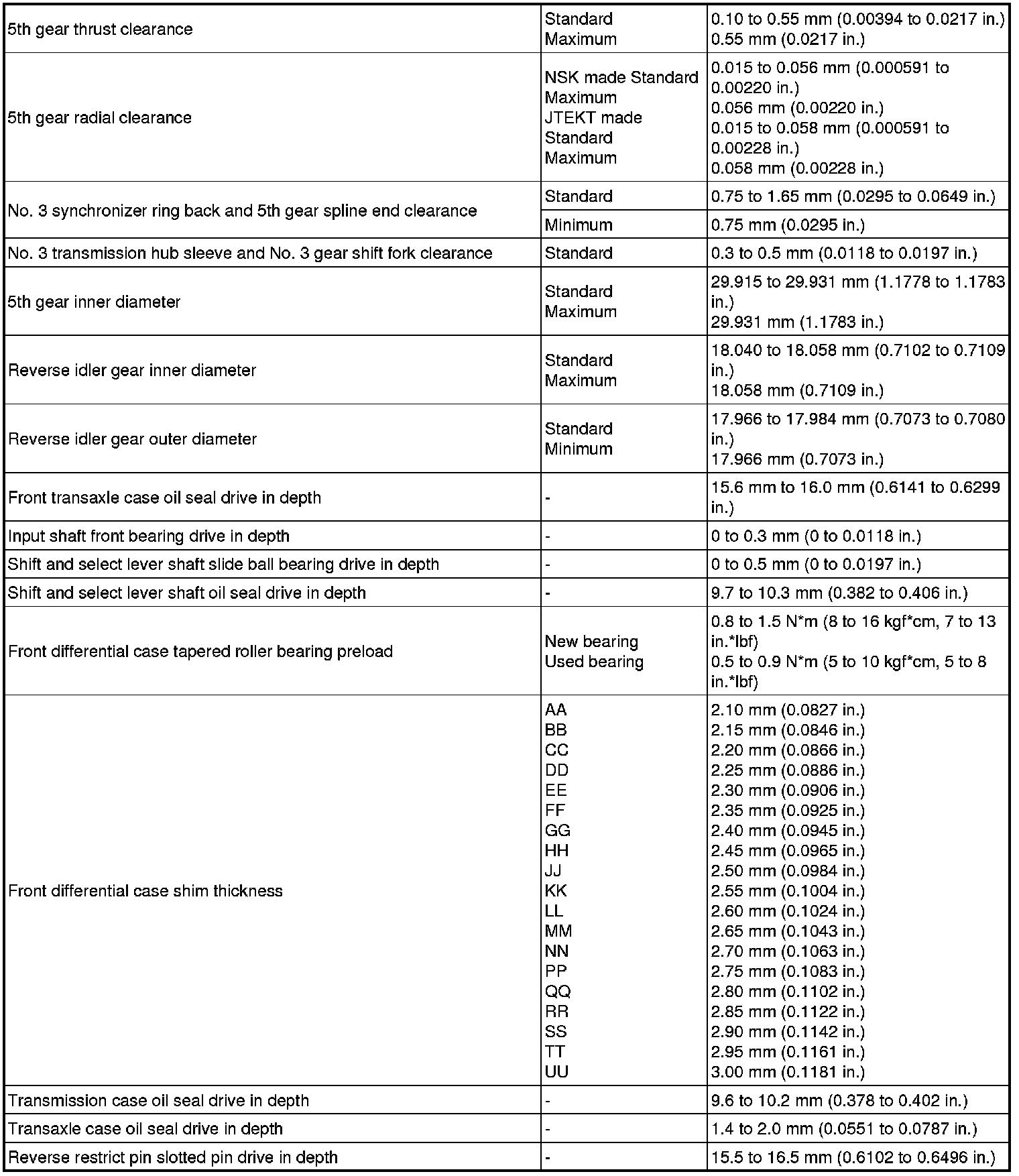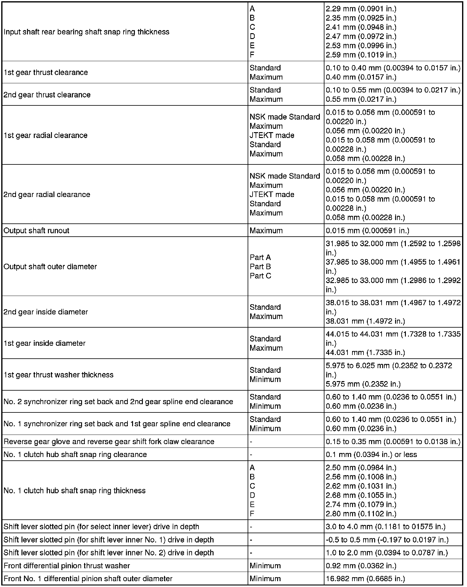 SPECIFICATIONS: C59 MANUAL TRANSMISSION / TRANSAXLE: SERVICE DATA; 2013 MY Corolla [07/2012 -]
