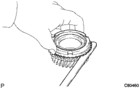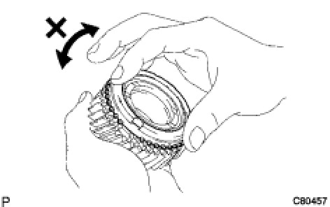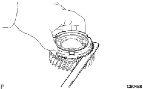 (c) Turn the synchronizer ring in one direction while pushing it against the 4th gear cone.