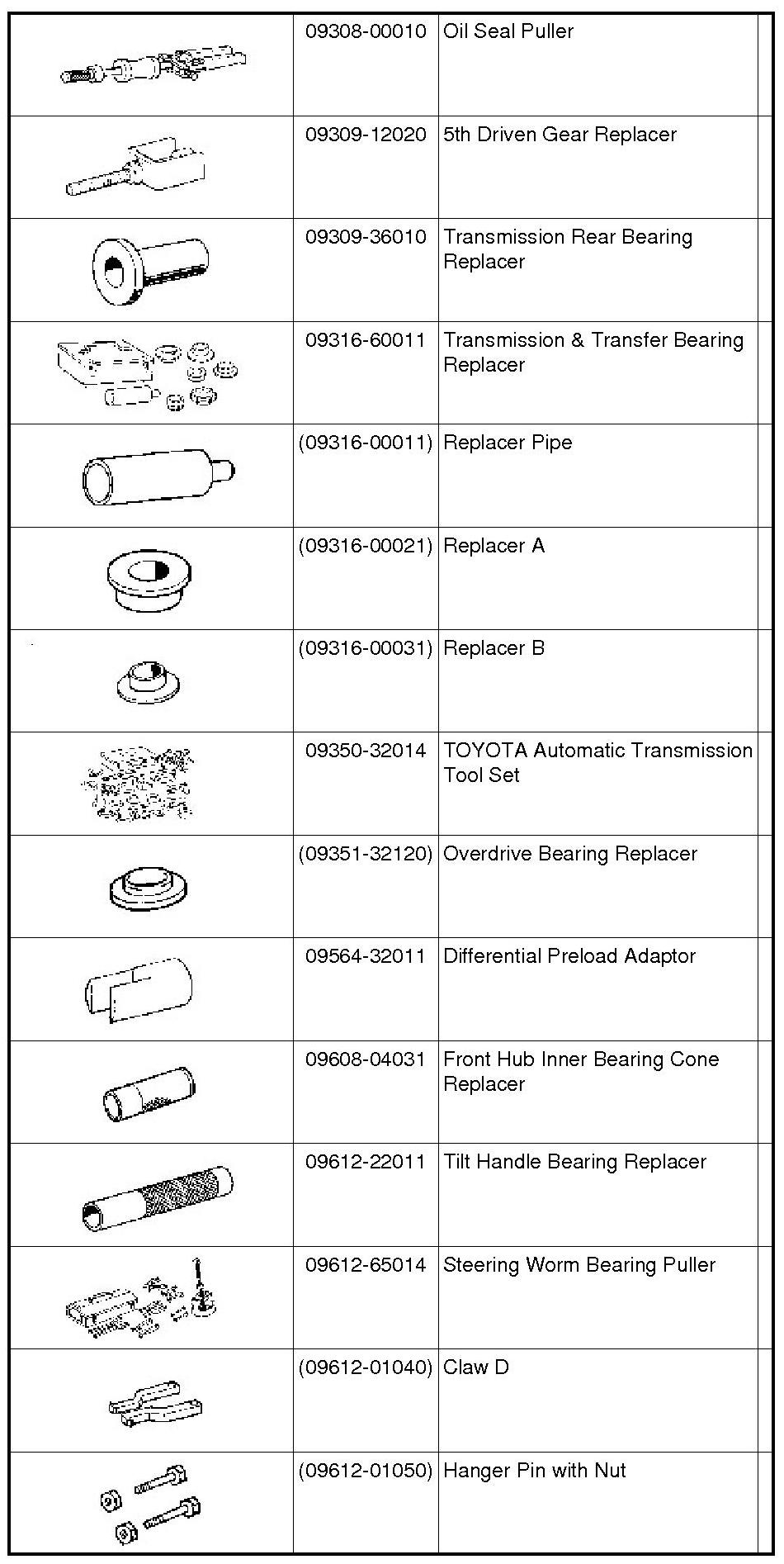 PREPARATION: C59 MANUAL TRANSMISSION / TRANSAXLE: SST; 2013 MY Corolla [07/2012 -]