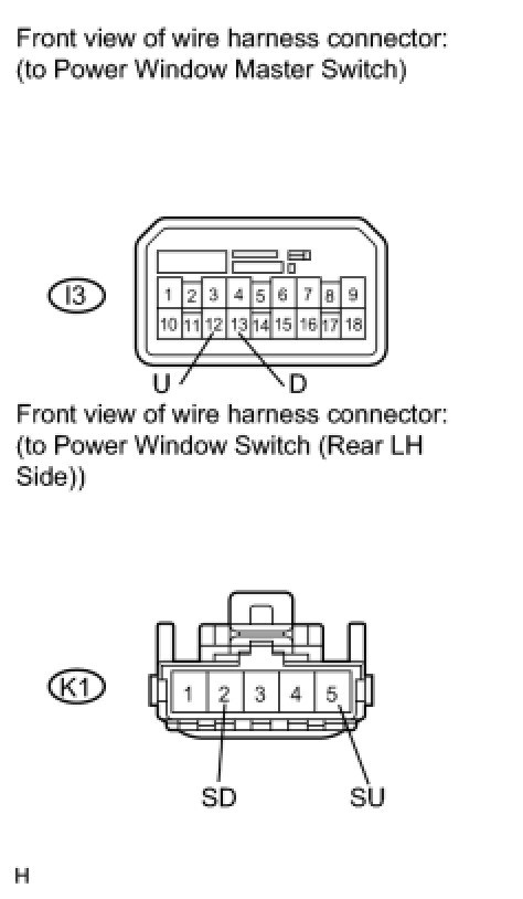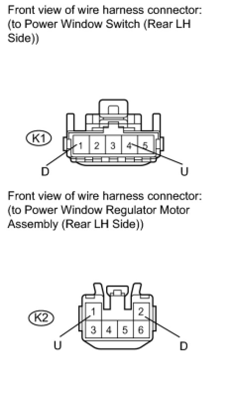 If the rear LH side manual UP or DOWN function does not operate, a malfunction may exist in the power window regulator motor, power window switch, power window master switch or wire harness.