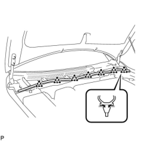 (a) Disengage the 7 clips and remove the hood to cowl top seal.