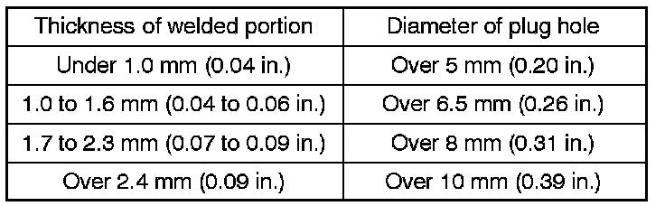 1. For areas where a spot welder cannot be used, use a puncher or drill to make holes for plug welding.