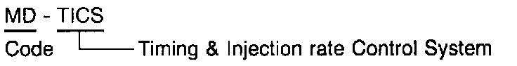 The MD-TICS system consists of the control unit, the pre-stroke actuator that is actuated by the signal from the control unit, the sensors (engine speed sensor, rack sensor, engine coolant temperature sensor, and pre-stroke sensor) that read the operating condition of the engine and give signals to the control unit, the switches and lights, and the electrical wiring.