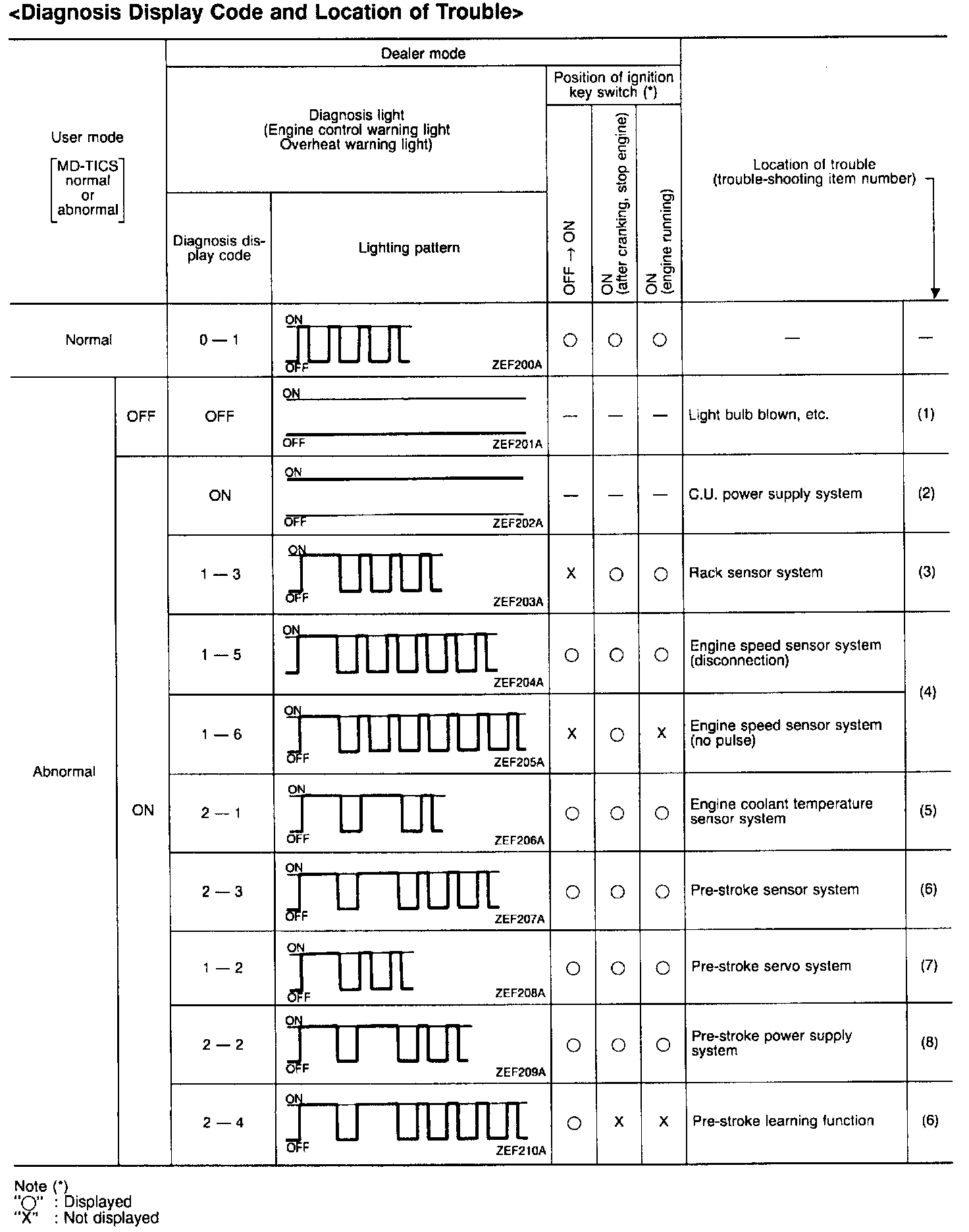 Diagnosis Display Code and Location of Trouble