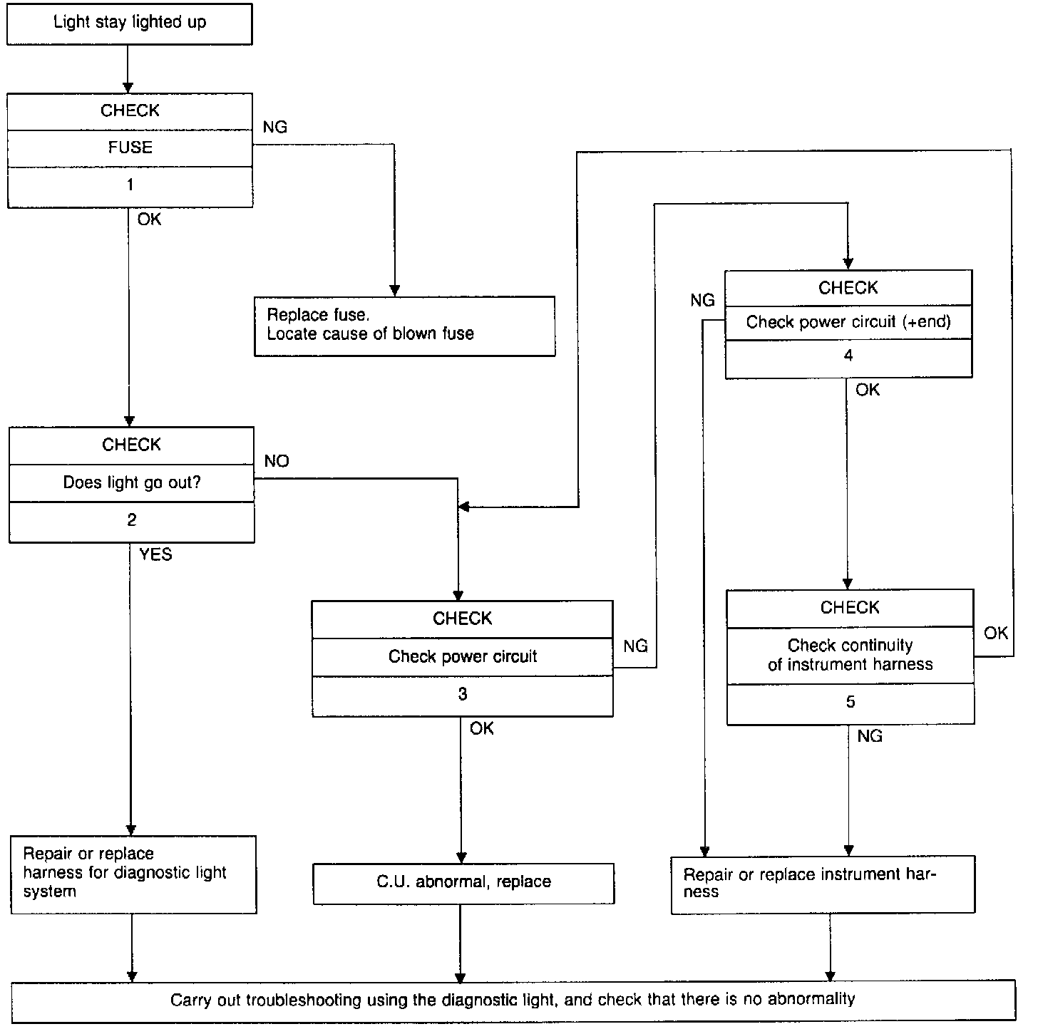 (2) CHECKING CONTROL UNIT POWER SUPPLY SYSTEM (lights do not go out)