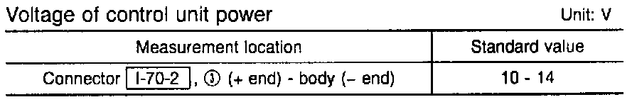 - Voltage is not as specified -> disconnection in harness between battery and fuse, abnormality in battery -> repair harness or inspect battery