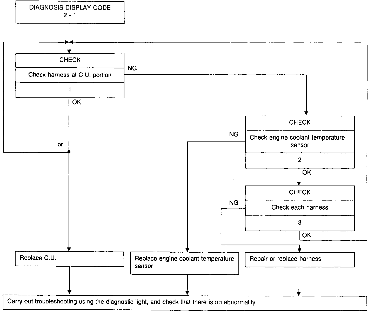 NOTE: After completing each operation, carry out trouble-shooting with the diagnostic light and confirm that there is no abnormality.