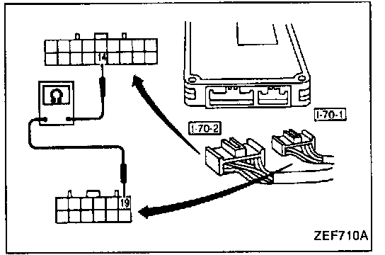 3. Measure the resistance between terminals (14) and (19) of connector [I-70-2].