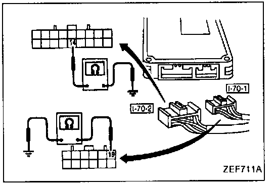 4. Check for insulation and short circuit between the body and terminals (14) and (19) of connector [I-70-2].