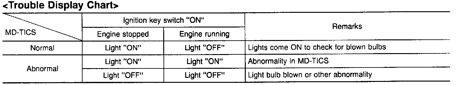 If it is judged that there is an abnormality in the MD-TICS system, the Engine Control warning light comes on to display trouble.