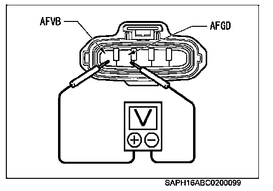 3. Measure the voltage between AFVB and AFGD terminals of air flow sensor connector. (Vehicle harness side)