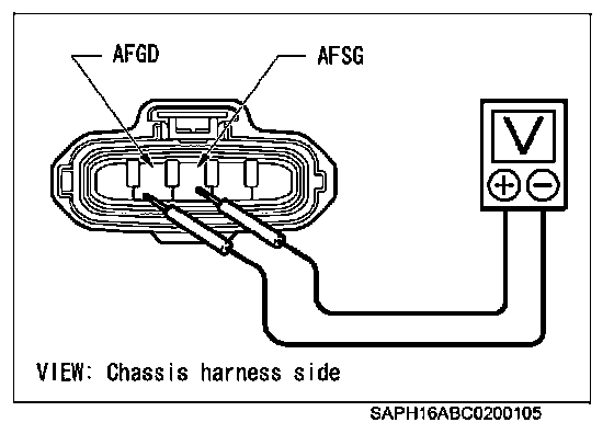 2. Measure the voltage between AFGD and AFSG terminals of air flow sensor connector (vehicle harness side).