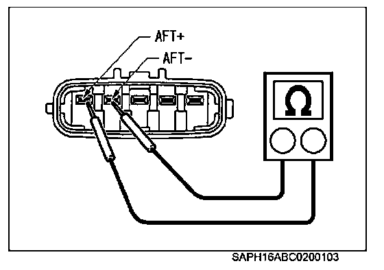2. Measure the resistance between AFT- and AFT+ terminals of the intake air temperature (air flow) sensor.