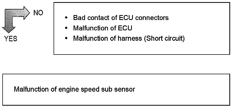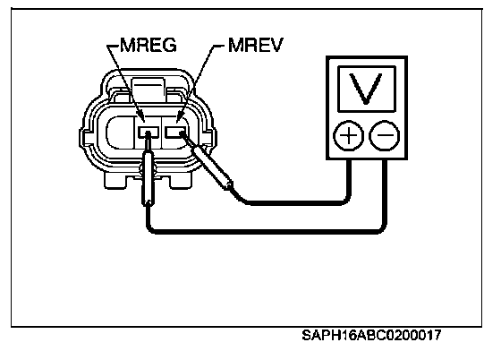 3. Measure the voltage between MREG terminal and MREV terminal of engine speed sub sensor connector. (Vehicle harness side)