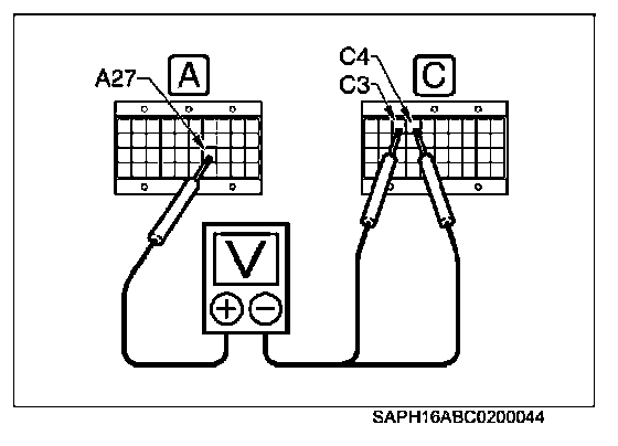 3. Prepare the voltage measurement between VS (A27) and CGD (C3 and terminals of ECU connector (vehicle harness side).