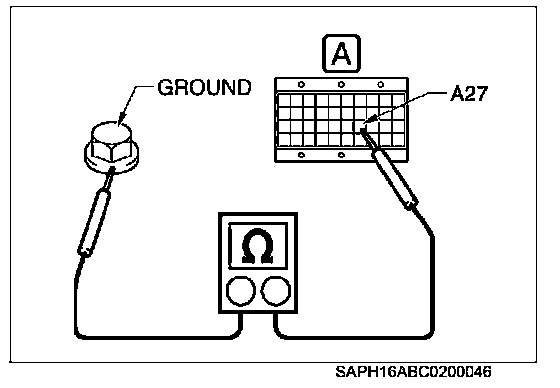 5. Measure the resistance between VS (A27) terminal of ECU connector (vehicle harness side) and ground.