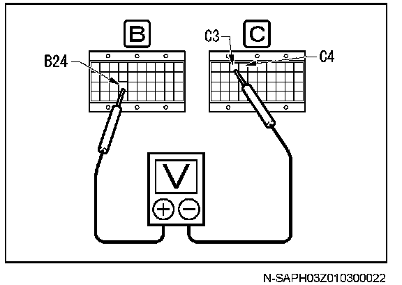 3. Measure the voltage between B24 and C3, C4 terminals of signal check harness.