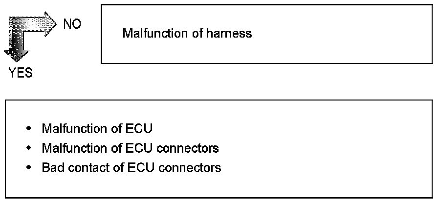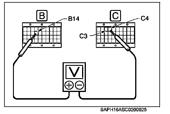 3. Measure the voltage between ST (B14) and CGD (C3 and C4) terminals of ECU connectors (vehicle harness side).