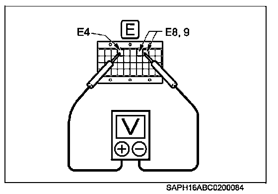 3. Measure the voltage between PGD2 (E4) terminal and SCVL (E8, E9) terminals of ECU connectors (vehicle harness side)