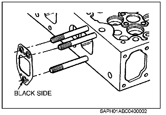 NOTICE: Since the exhaust manifold gasket must be installed in one install the gasket with the black side facing toward the exhaust manifold.