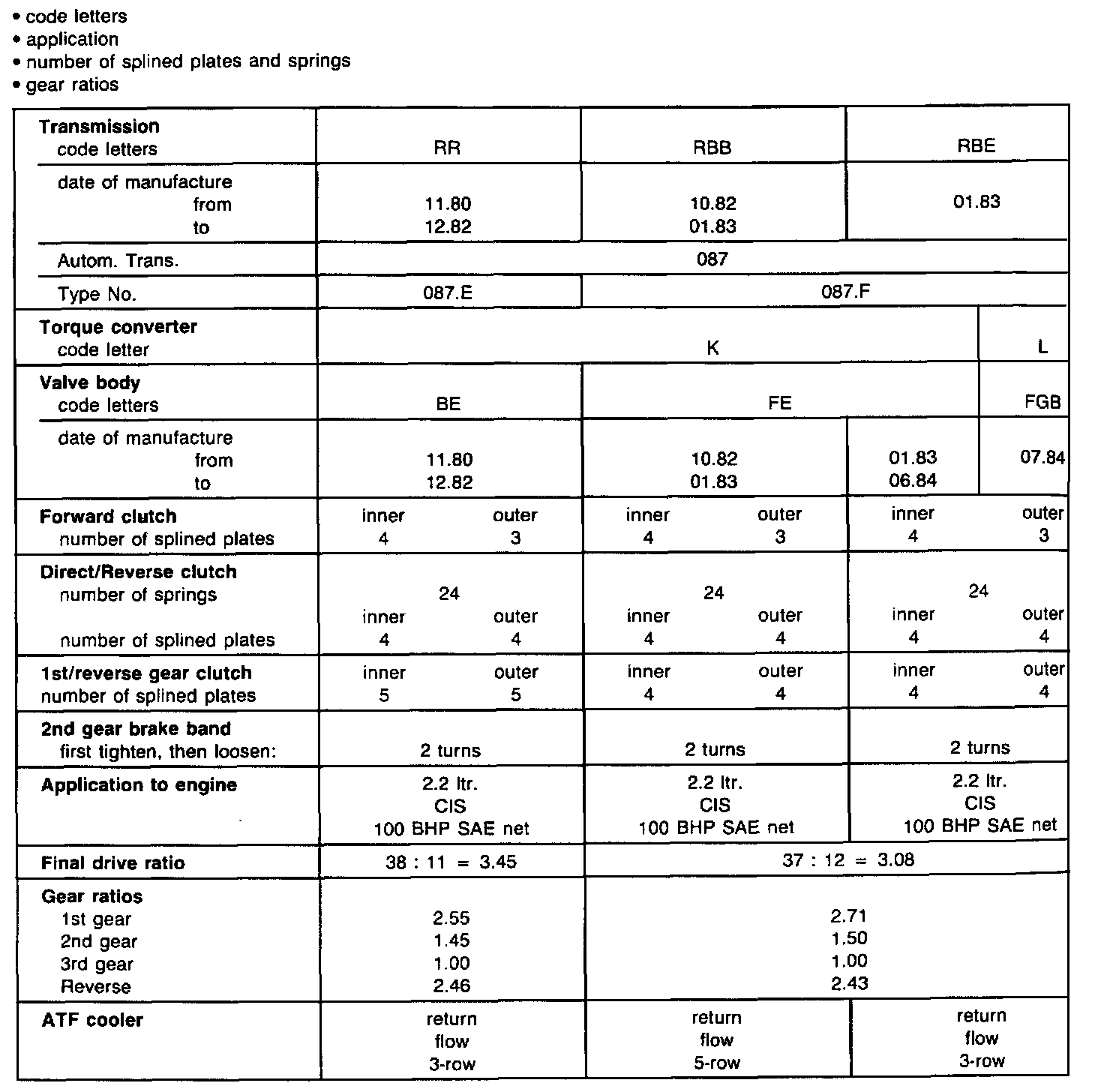 Automatic Transmission 087 SpecificationsTechnical Data: