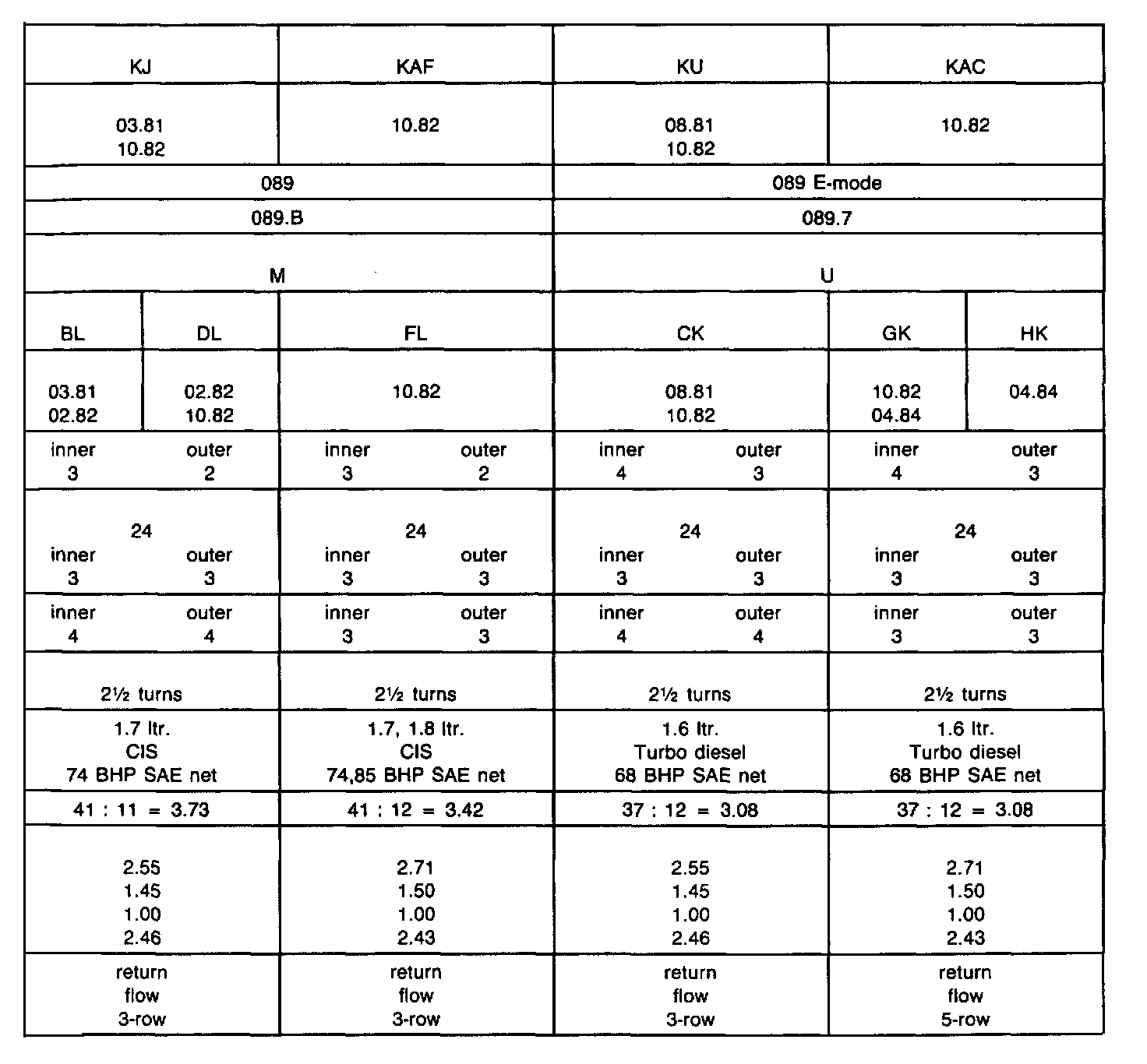 This table allows identification of springs by their dimensions. Coil diameter and free length can vary between new and used springs (due to settling) so check spring wire thickness and number of coils first, as means of identifying spring. If this is not enough also use inner coil diameter and free length