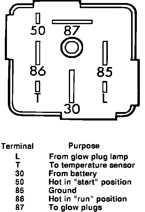 1. Disconnect the glow plug relay from the relay holder and ground terminal L, Fig. 12. Turn the ignition switch to the run position and observe the indicator lamp. If the lamp does not illuminate, check the circuit to the lamp. If the circuit is good, replace the lamp.