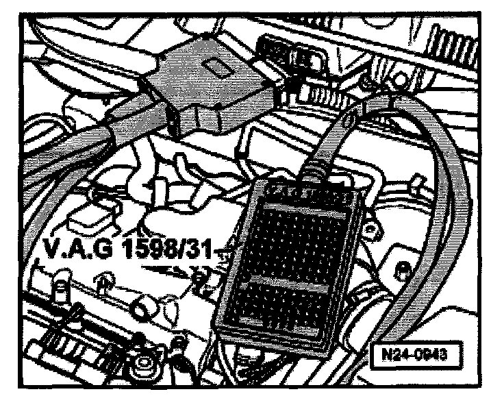 - Connect VAG1598/31 test box to Engine Control Module (ECM) wiring harness. Engine Control Module (ECM) is not connected by this action.