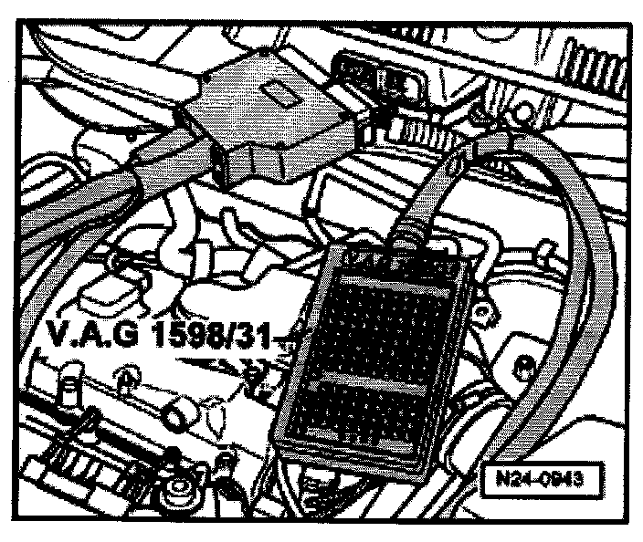 - Connect VAG1598/31 test box to Engine Control Module (ECM) wiring harness. Engine Control Module (ECM) is not connected by this action.