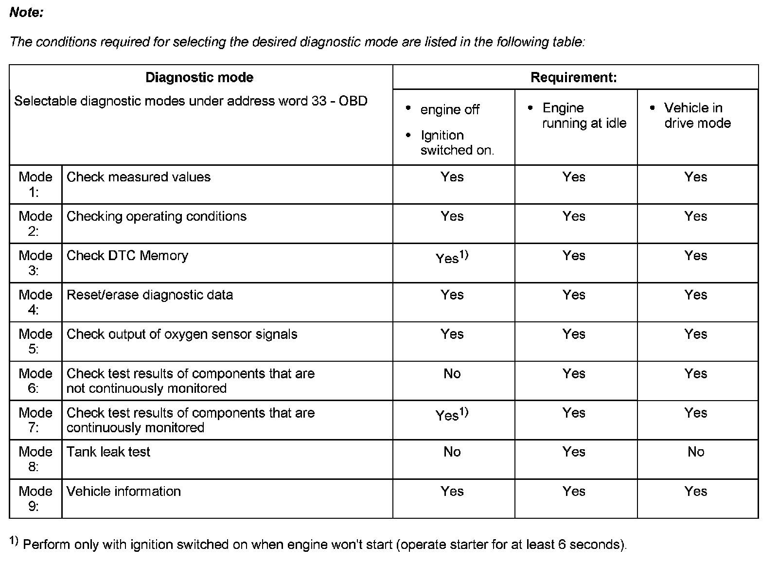 Selectable diagnostic modes under address word 33 - OBD