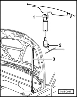 - Lift securing clip - 1 - using a screwdriver and remove gas-filled strut - 3 - from ball studs - 2 -.