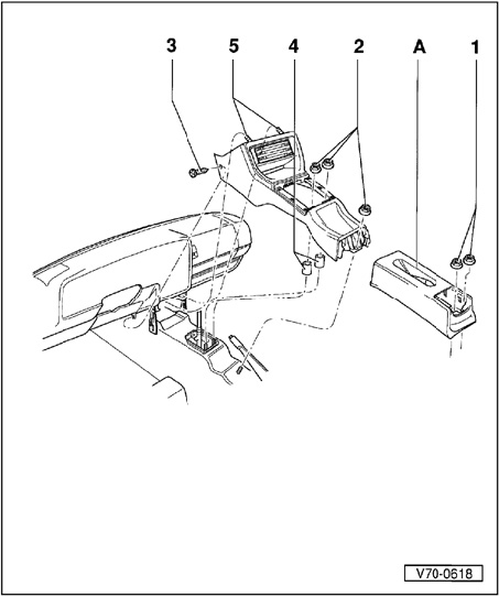 - Remove cover - A - from center console in opposite direction of travel and disconnect electrical connections.