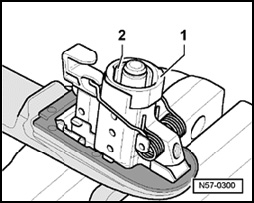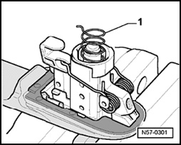 - Install torsion spring - 1 - into lock cylinder housing so that torsion spring end points toward rear.