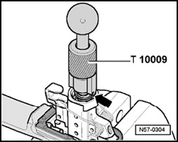 - Lift Assembly tool T10009 far enough until groove in lock cylinder becomes visible.
