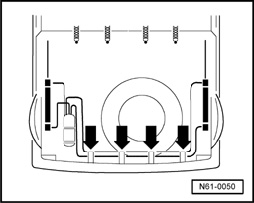 - Expose hydraulic hoses and unclip from trim panel - arrows - (only hoses for right hydraulic cylinder).