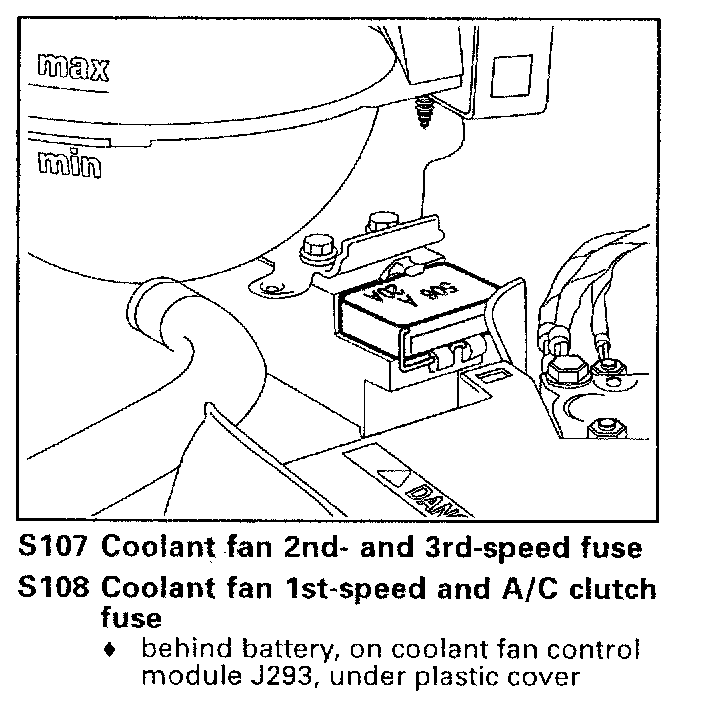 Coolant fan 1st-speed and A/C clutch fuse S108