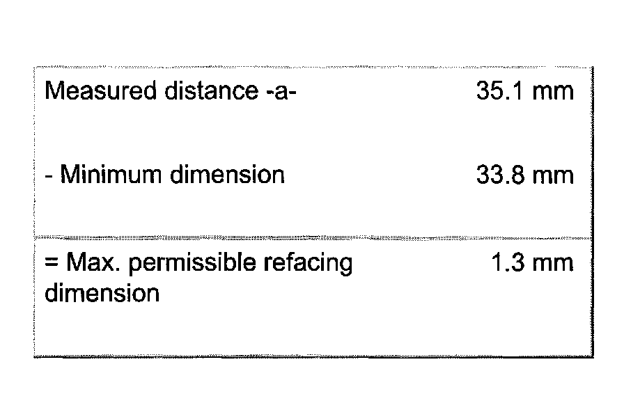 - Measured distance minus the minimum dimension is the maximum permissible refacing dimension.