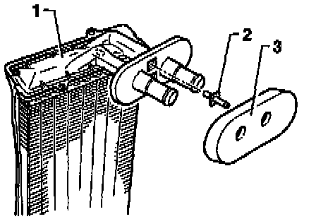 2. If heater core does not lock into place during installation, fasten to heater box using screws through tabs on top of heater core.