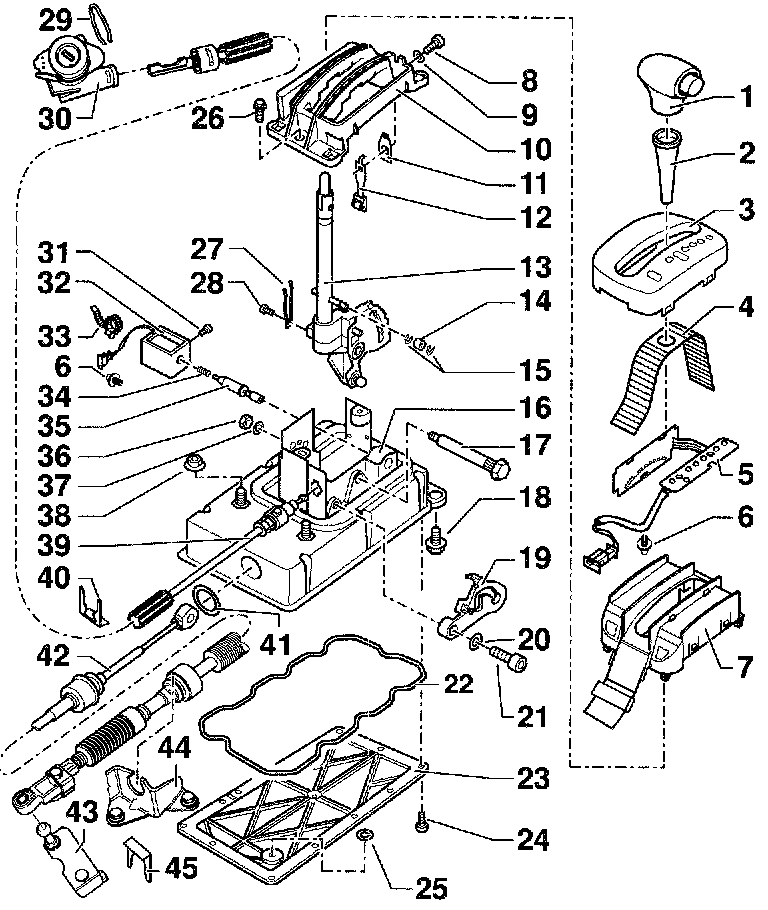 ^ Does not need be removed to replace most of individual parts, with the exception of selector lever and selector lever lock solenoid