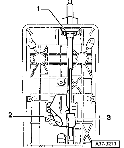 - Pull circlip -1- for securing selector lever cable to selector lever housing out downward.