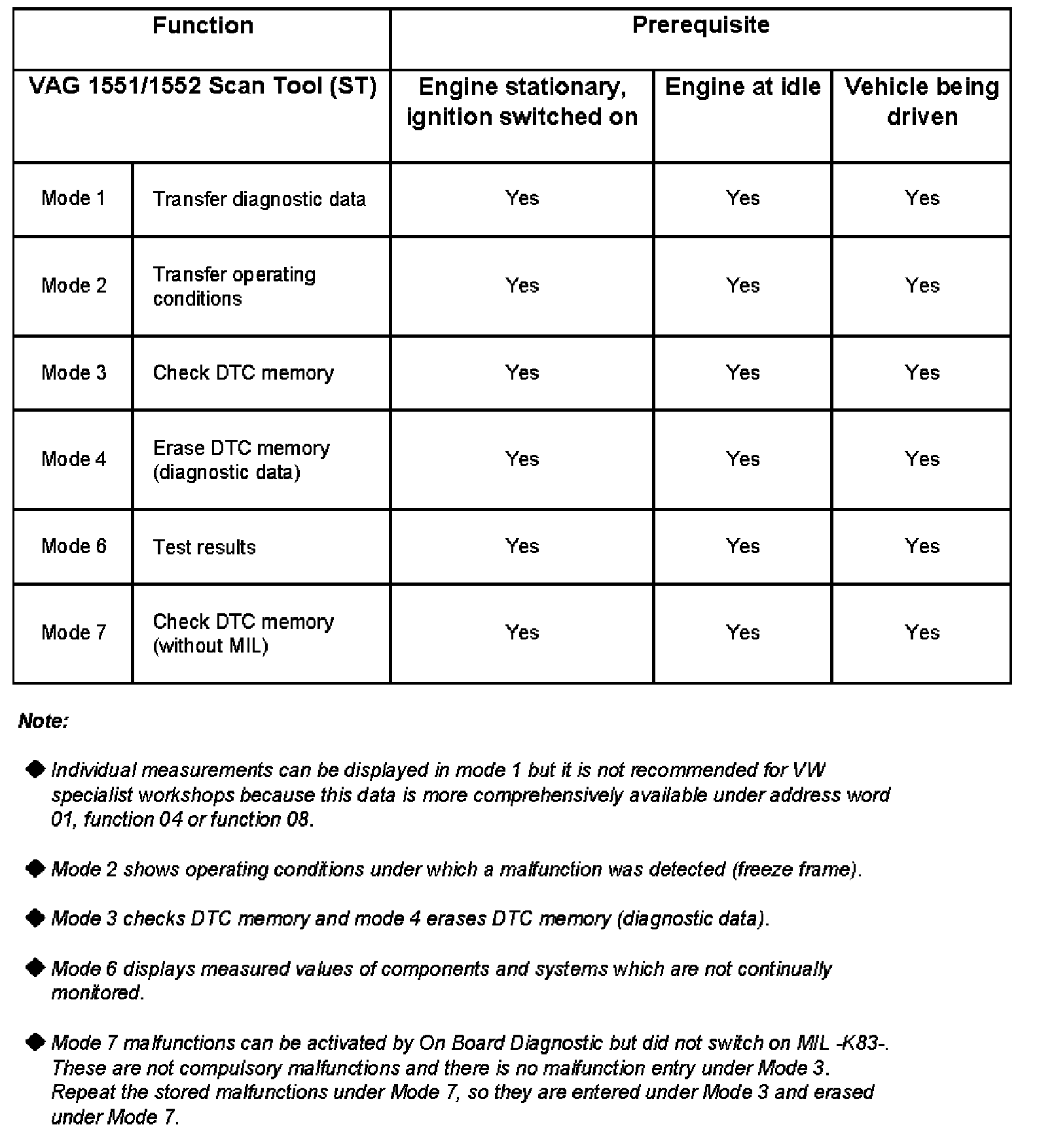 Selectable Functions (Modes) Under Address Word 33, CARB/OBD II