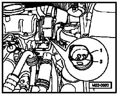 - Disconnect 4 pin connector from Engine Coolant Temperature Sensor -G62- with Engine Coolant Temperature Gauge Sensor -G2- (arrow).