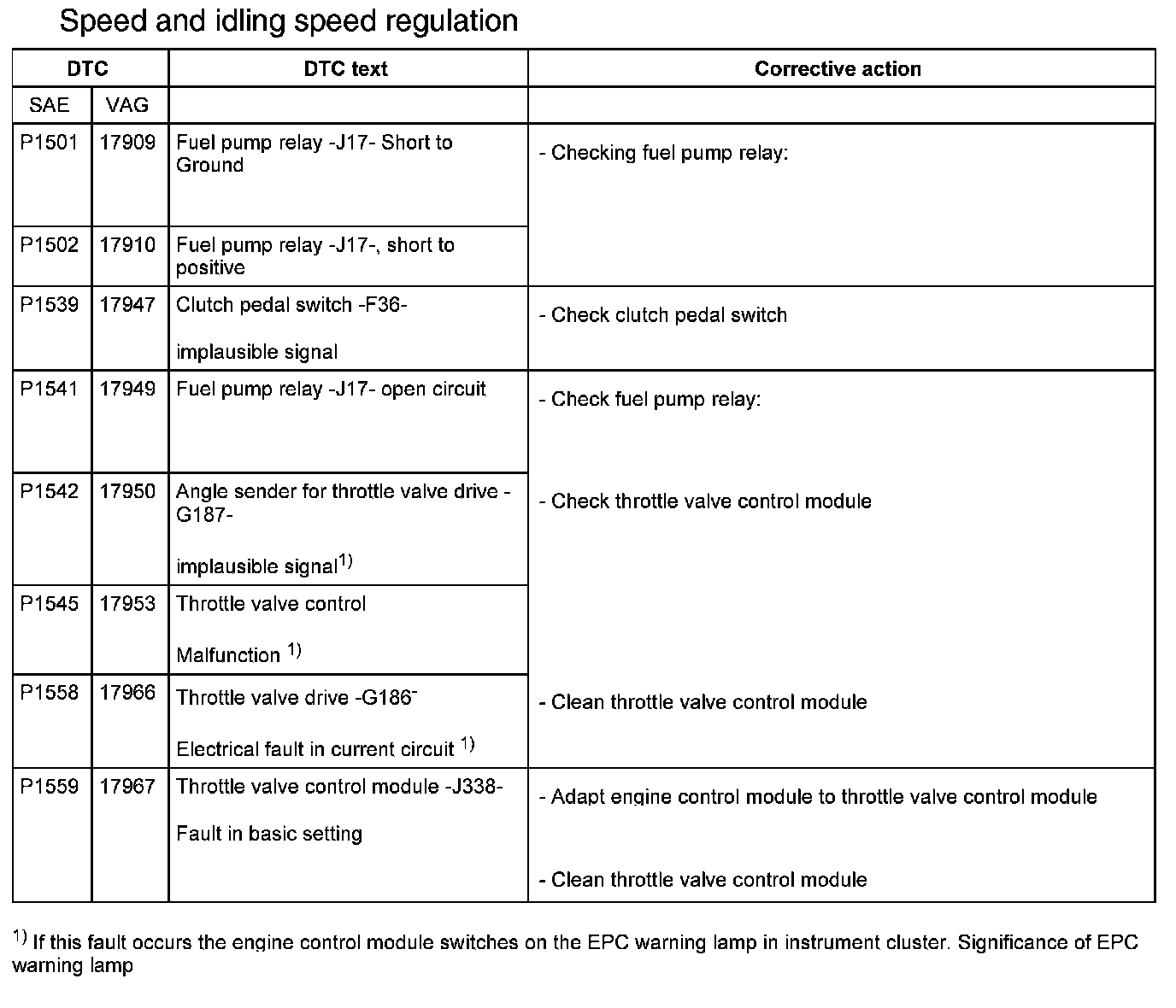 DTC P1501 - P1559: