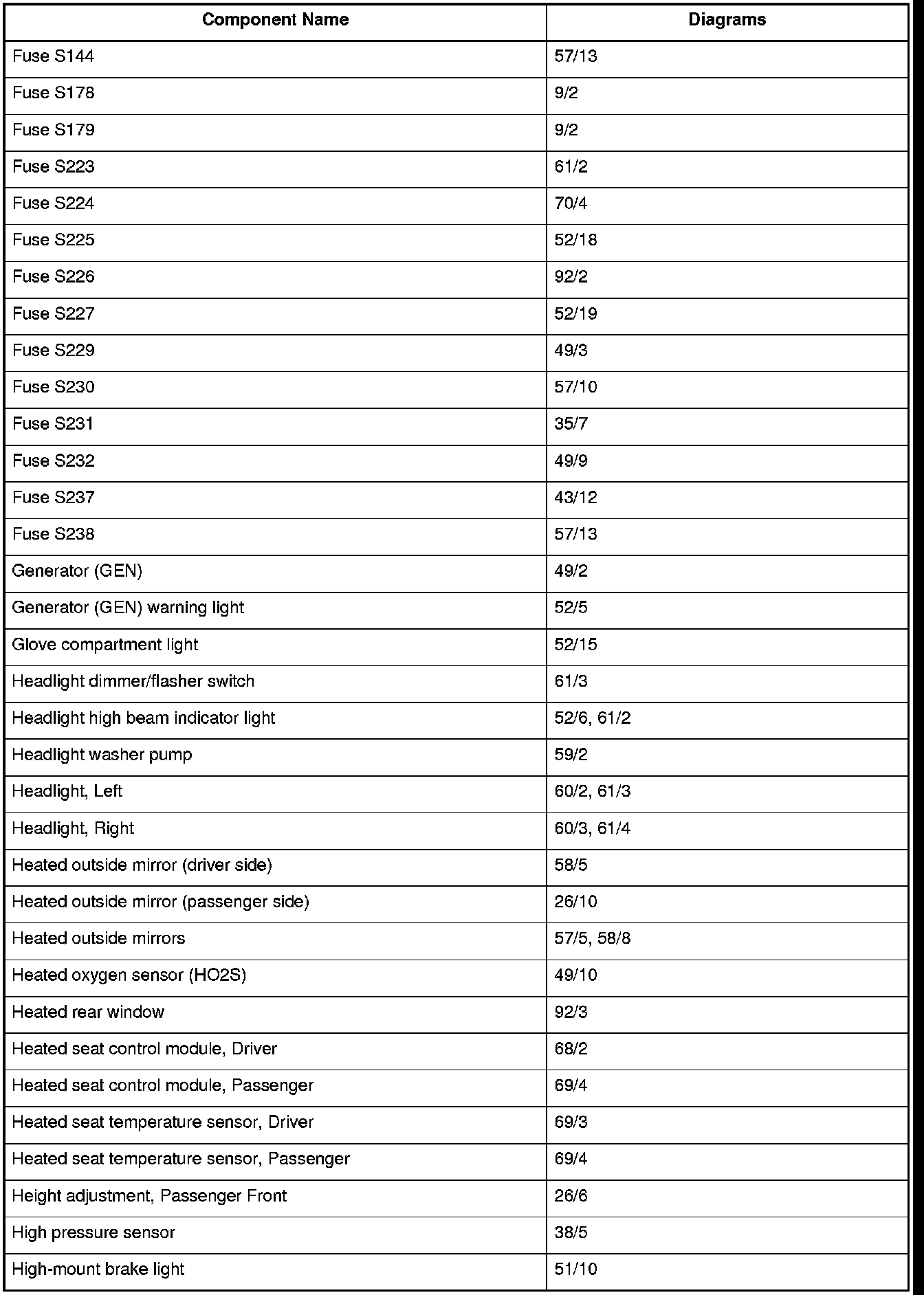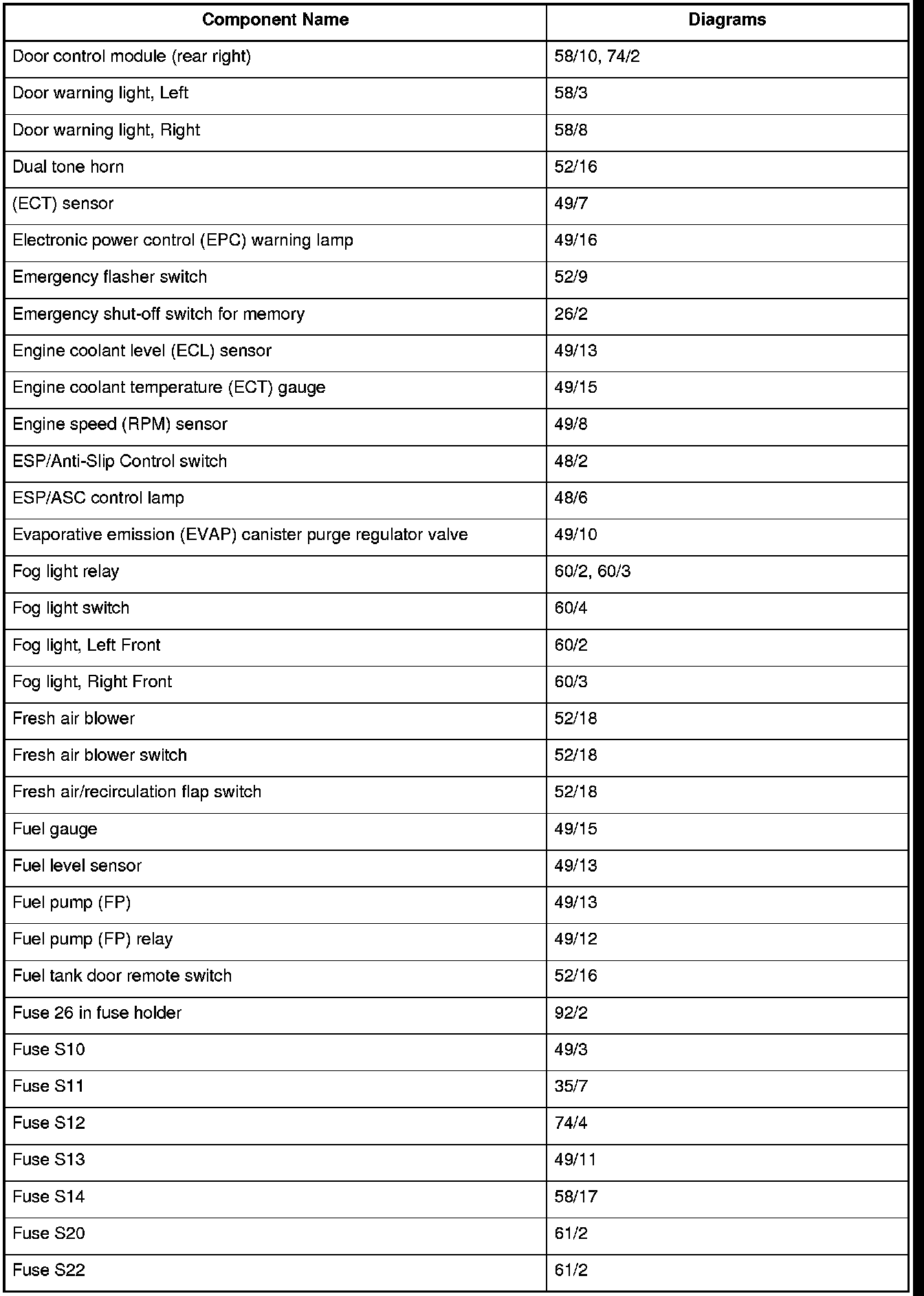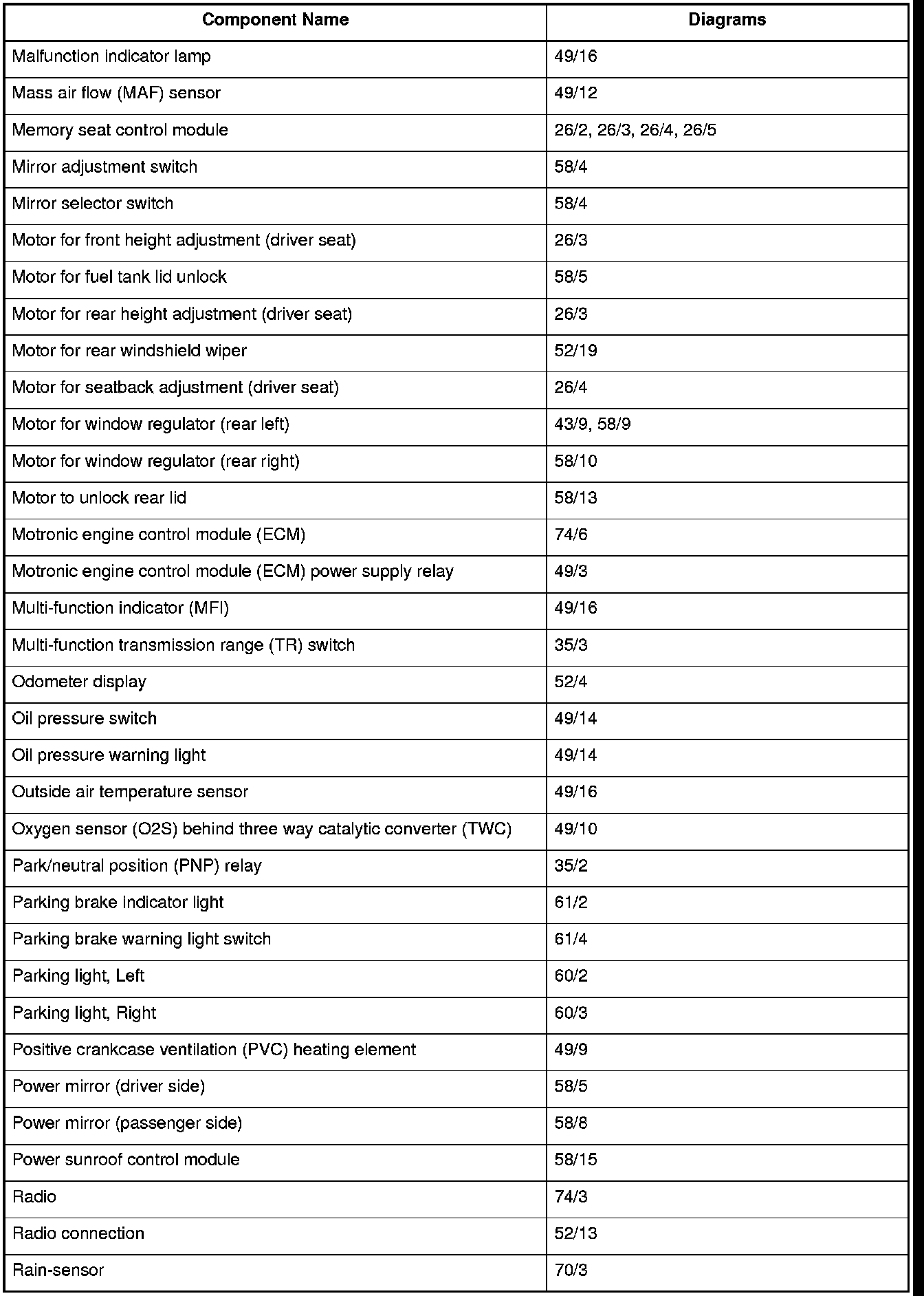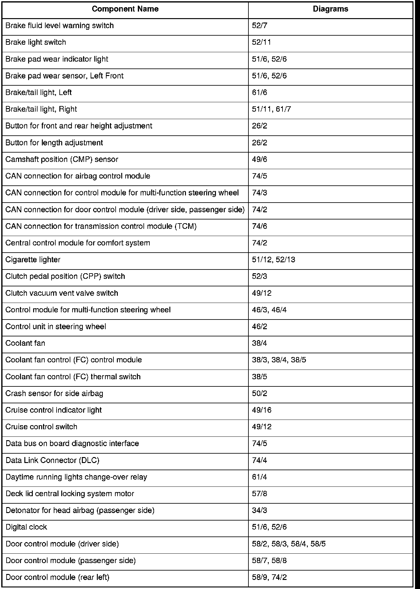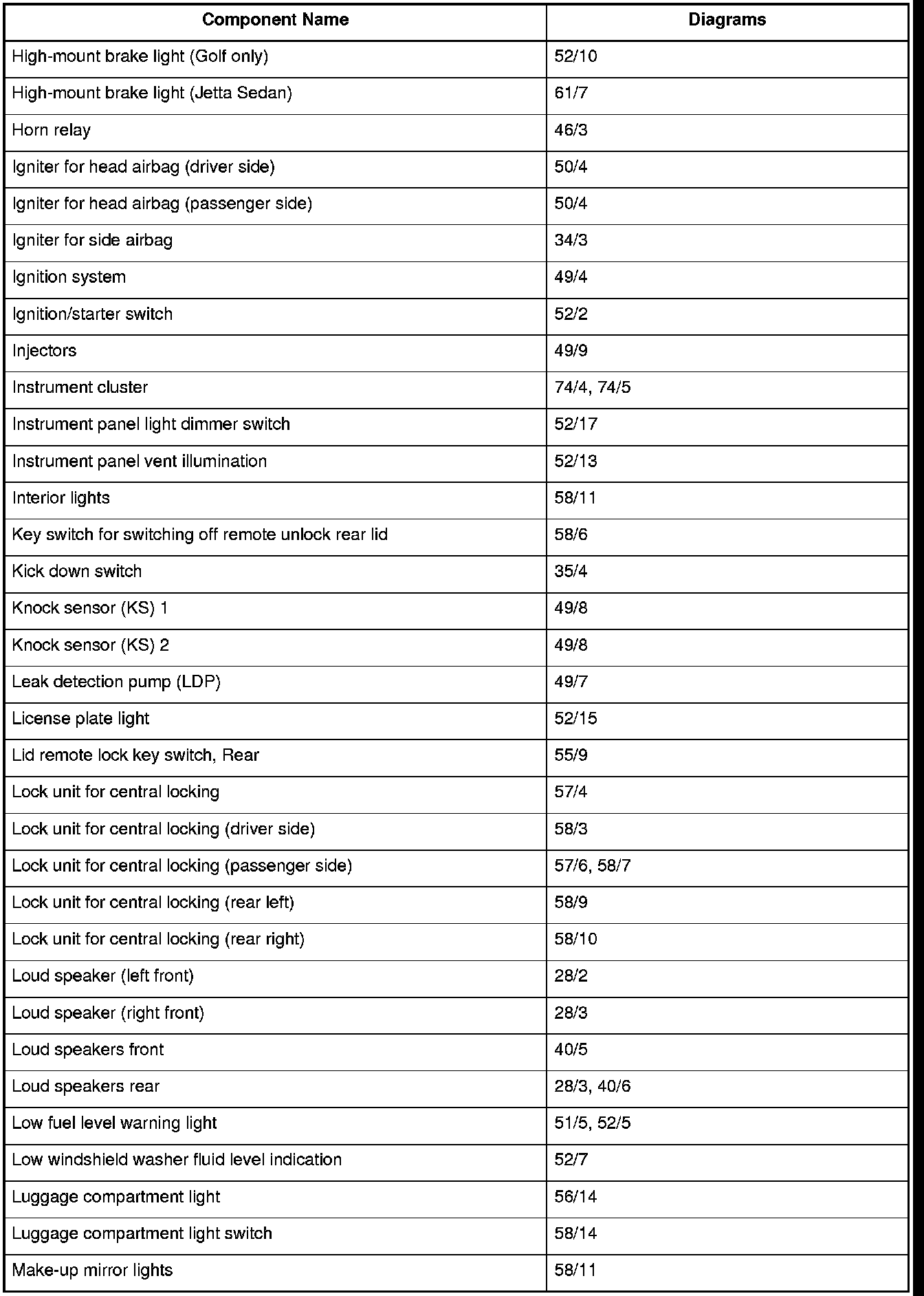 Master Diagram Index